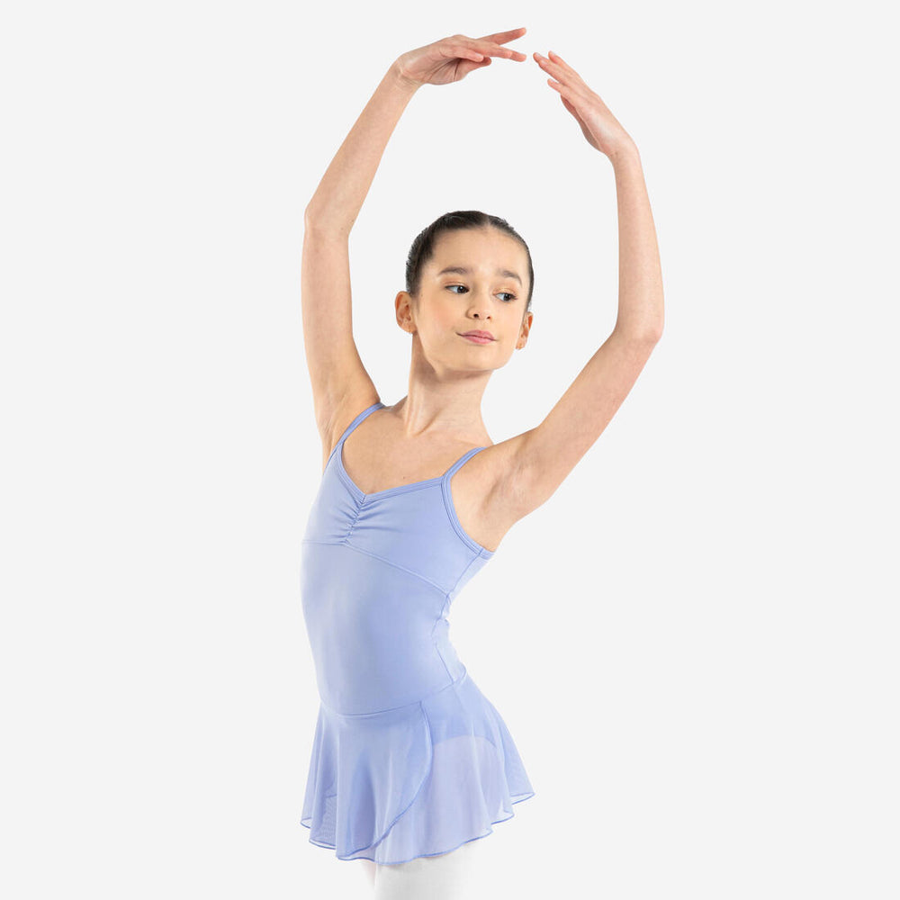The ideal skirted leotard for all skill levels, from beginner to advanced dancers. Thin straps, gathered at the front and lined, its built-in muslin skirt will make it easy to see your movements