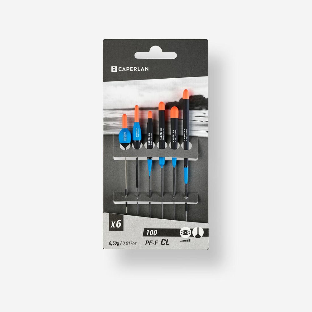 Set of 6 floats with different shapes to adapt to every type of situation when fishing. This set is available in 3 weights: 0.5 g, 1 g and 2 g.